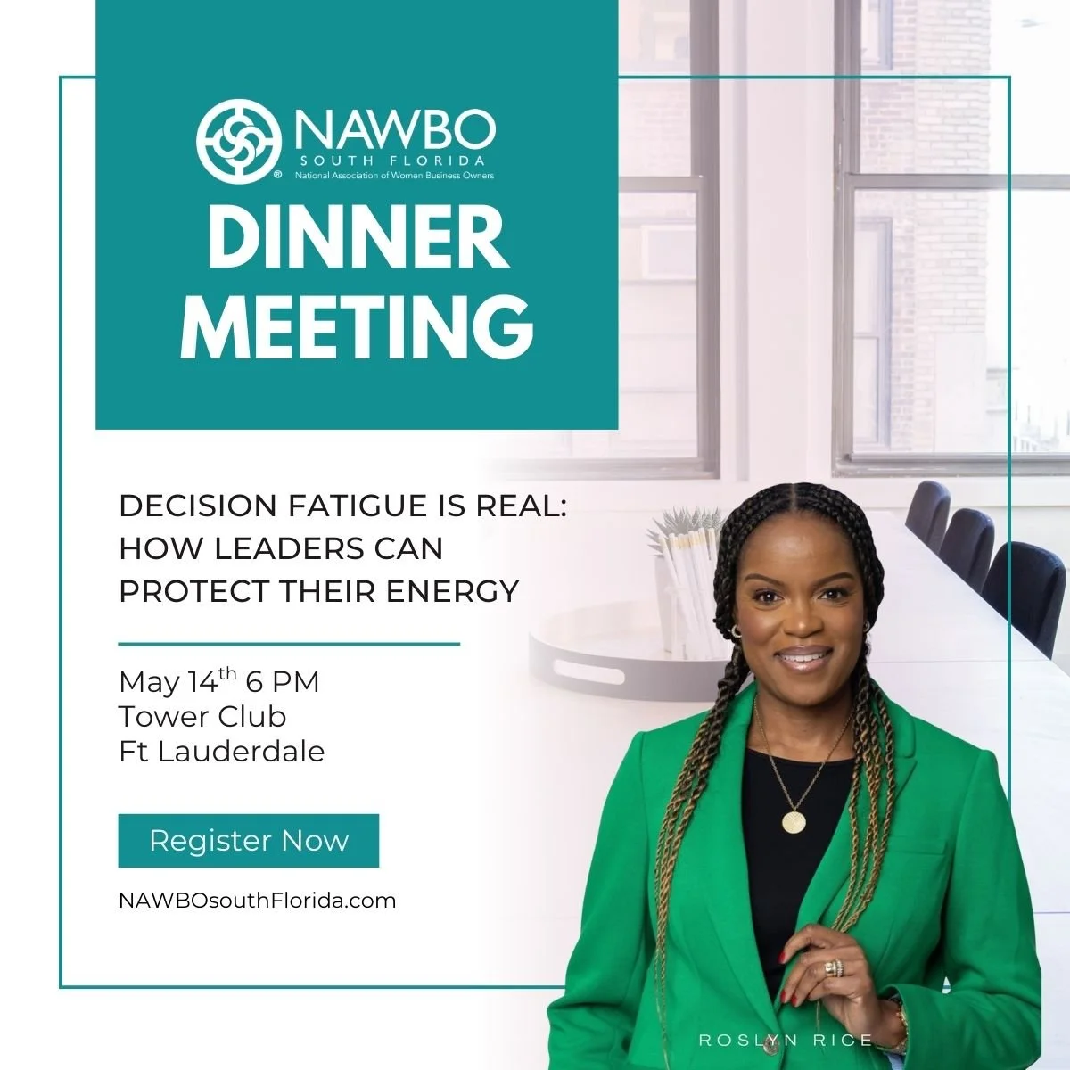 Roslyn is also a past president of NAWBO South Florida and a dedicated advocate for women business owners.